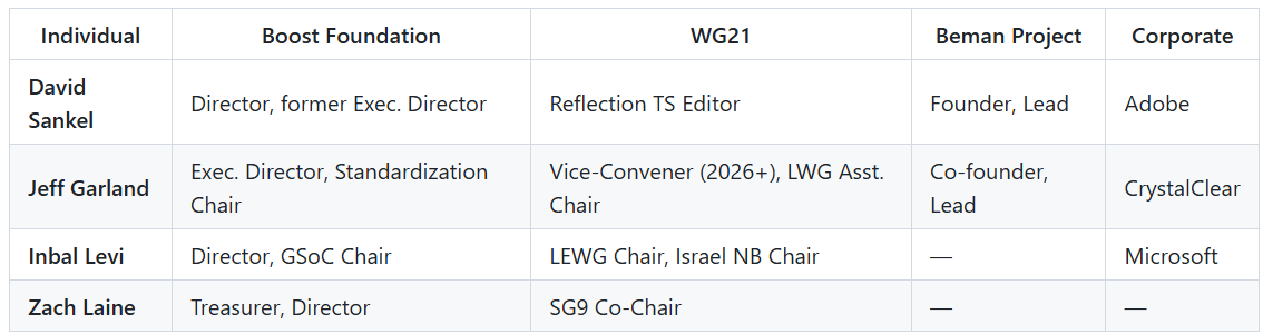 This overlap isn’t inherently problematic—these are competent individuals with deep standardization experience. But it does explain the project’s orientation: the Beman Project is effectively an extension of WG21’s institutional infrastructure, designed to serve committee needs.