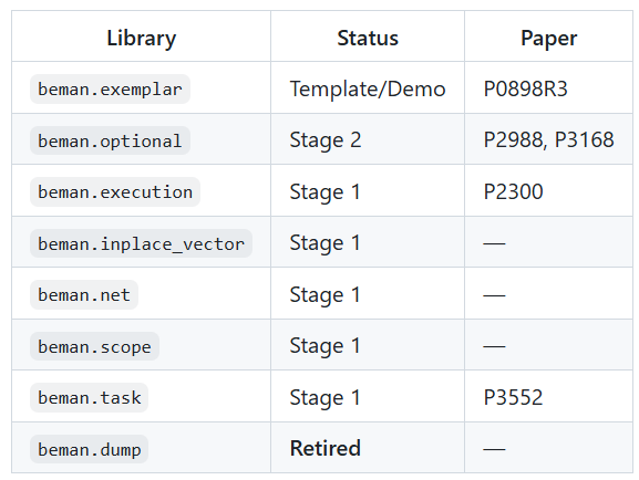 “The Beman Project’s mission is to support the efficient design and adoption of the highest quality C++ standard libraries through implementation experience, user feedback, and technical expertise.”