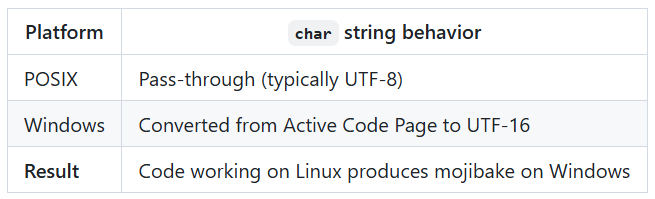 The encoding model is broken on Windows, but “mostly fine” on POSIX
